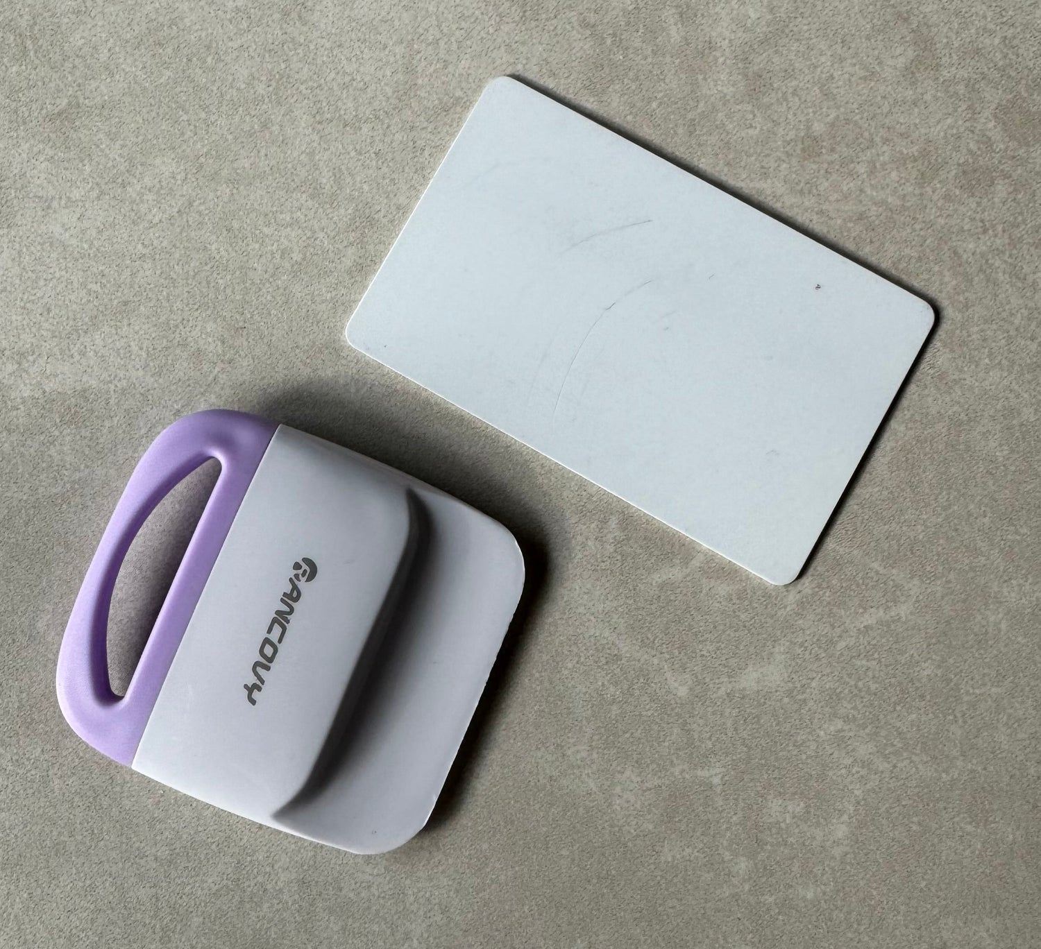 After receiving your order, please have a fairly hard and resistant plastic card (credit card, loyalty card, etc.) or a squeegee ready.